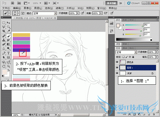 下面将“人物 2”文档中吸取的RGB颜色值替换“人物 1”文档中吸取的颜色值。