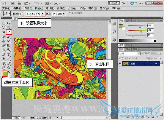 其吸取的颜色是在所单击点的51×51个像素范内的平均颜色值,