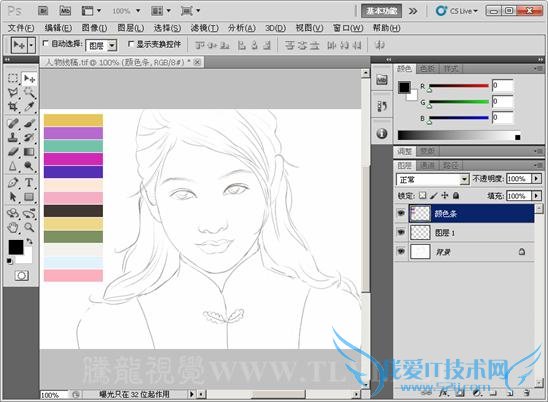 (1)首先执行“文件”→“打开”命令,将素材“人物线稿.tif”文件打开。