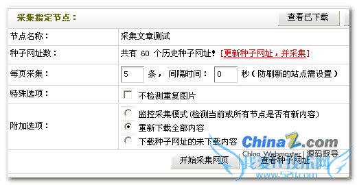 新建一个文章采集节点,后台——采集——采集节点管理——增加新节点,选择内容模型为普通文章。