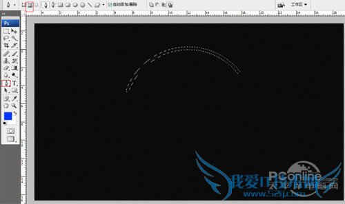 3、在图层面板上单击创建新图层按钮 ,新建一个图层2,在工具栏中选择钢笔工具,在工作区画出半圆的形状,按键盘快捷键Ctrl+Enter转换成选区,接着按键盘快捷键Alt+Delete填充,并按键盘Ctrl+D取消,如图3所示。