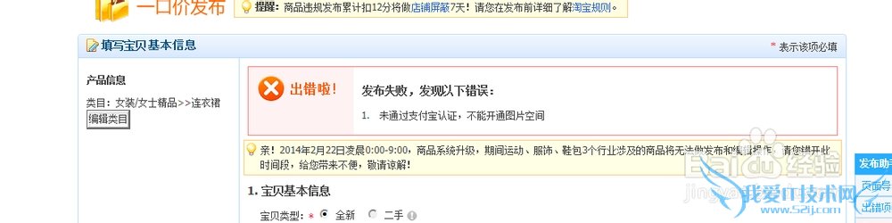 记得只有通过实名认证的卖家才可以使用图片空间哦,不然会提示如图: