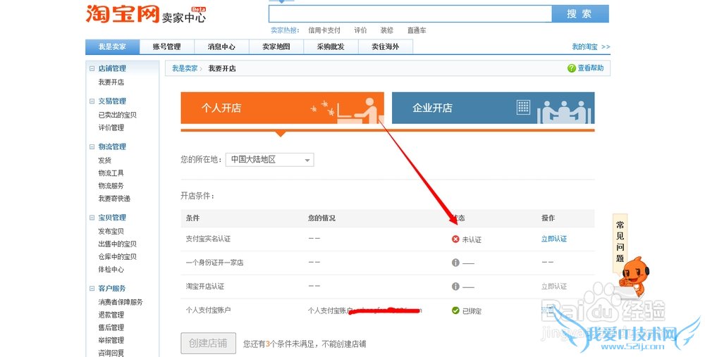 如果没有找到淘宝图片空间的亲们,看看自己是不是已经通过开店认证哦。