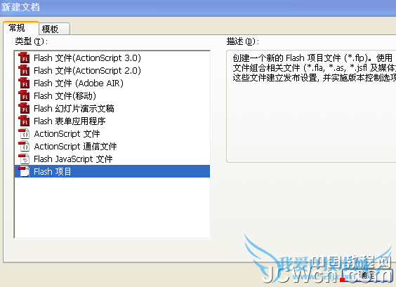 1、首先打开Flash CS4 (CS3、CS4或CS5没什么大的区别)新建项目,按确定。打开项目面板。图:新建项目