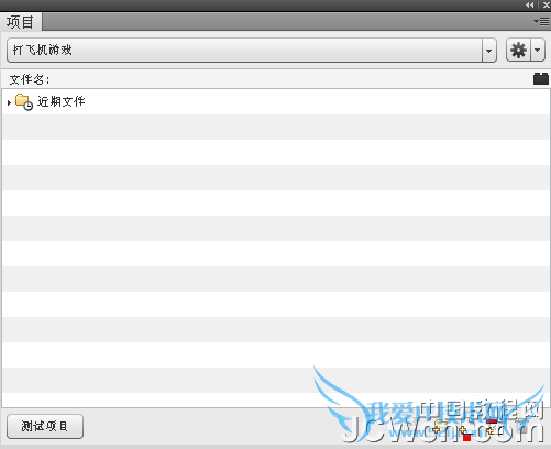 2、 点击右边的第一个三角按钮(项目),在下拉菜单中选"新建项目"。在弹出新建项目面板项目名称:填入项目名称。在根文件夹:项中点击右边的浏览按钮,浏览 到准备存放项目的目录,按确定。在ActionScript版本:选ActionScript 3.0 。单击"创建项目"按钮,这样项目就建好了。图:项目面板