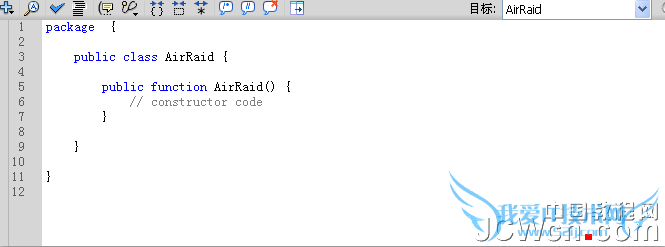 图标,在弹出的创建类面板类:的文本框中填入文件名:AirRaid 单击创建类按钮。这样类就创建好了并为我们写好了类的框架,我们可以在框架中添加我们的代码了。图:创建类