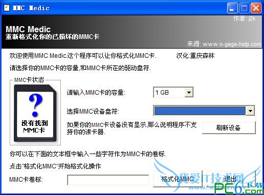 MMC Medic 一款MMC卡格式化工具,如果你MMC卡设置了密码,且自己又忘记了所设密码,或者是一些什其他的的原因,导致内存卡格式化不了的问题,这个时候用这个工具就派上用场啦!它可以为你很方便解决这些问题这个问题。