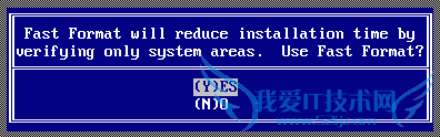 接下来是提示窗口,询问你是否进行快速格式化,除非你的硬盘有问题,建议选择“(Y)ES”。