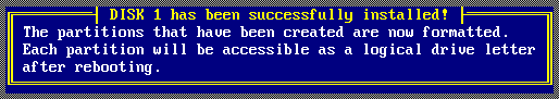 完成分区数值的设定,会显示最后分区详细的结果。此时你如果对分区不满意,还可以通过下面一些提示的按键进行调整。例如“DEL”键删除分区,“N”键建立新的分区。