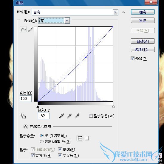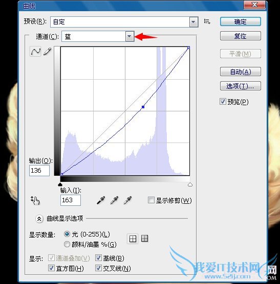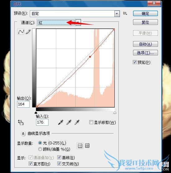 第7步:此时我们感觉脸部颜色差别很大,我们使用曲线对红、绿、蓝通道进行调整,如下图所示;