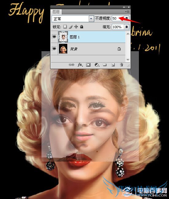 第4步:选择图层一,降低不透明度为50%,如下图所示;