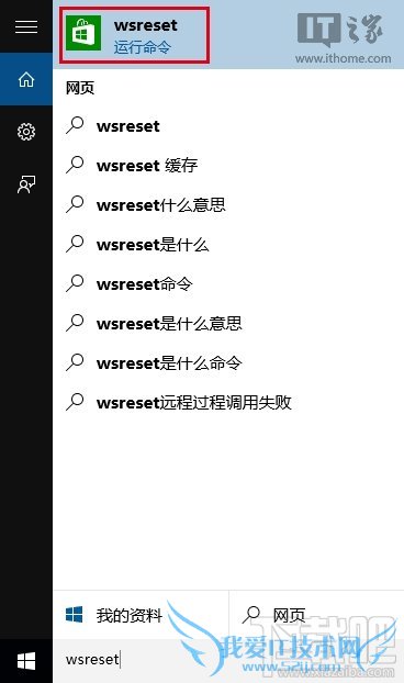 1、在Cortana搜索栏输入wsreset,然后选择第一项