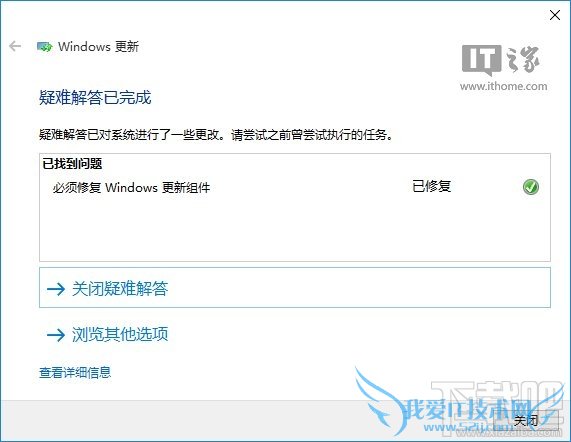 4、Win10会自动搜索问题并尝试解决,完成之后,会给出相应结果(上图只是举例,实际结果可能不同)