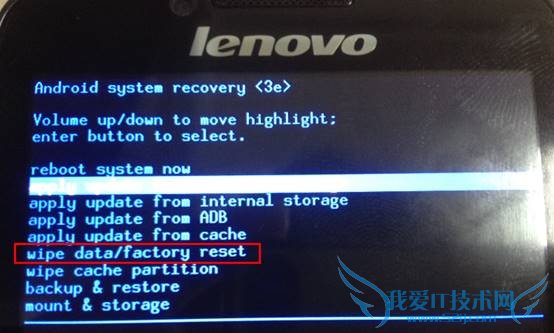 1. 使用音量加减键选择至“wipe data/ factory reset”,按电源键确认;