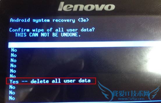 2. 使用音量加减键选择至“Yes”,按电源键确认;