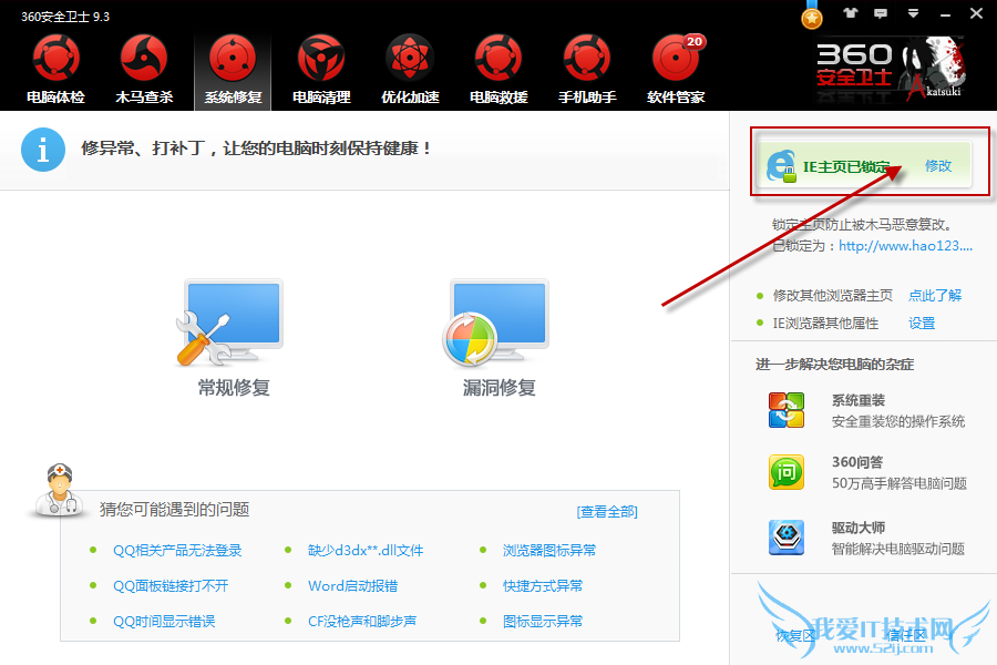 5、如果您的电脑上装了360安全卫士,那么就需要在360卫士的系统修复选项卡里面更改了。