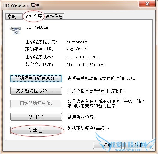 6.点击“驱动程序”选项卡,点击“卸载”。若弹出是否删除驱动程序文件 选否。