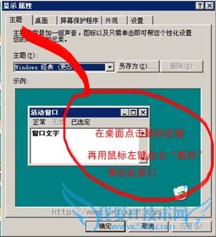 1、在桌面点击鼠标右键,再用鼠标左键点击“属性”,弹出下面(图1)的对话框: