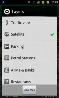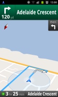 就像其他导航系统,导航可以用语音导航。在交通高峰时, 打开菜单并选择Layers,然后打开交通视图。这会提醒并放大路面前边的阻碍。使用同样的菜单找到停车,加油站,甚至是转到卫星定位的视角。当这个看上去,记得你正在下载图片,潜在的阻止了你的数据连接。请注意,导航总需要下载一些资料,因此这样用会很昂贵。办一个资料包月套餐,或者从安卓市场购买一份完全的导航系统。