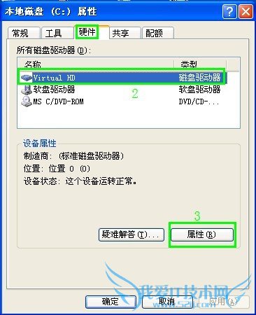 “硬件”选项卡下选中U盘的设备,点击下面的“属性”