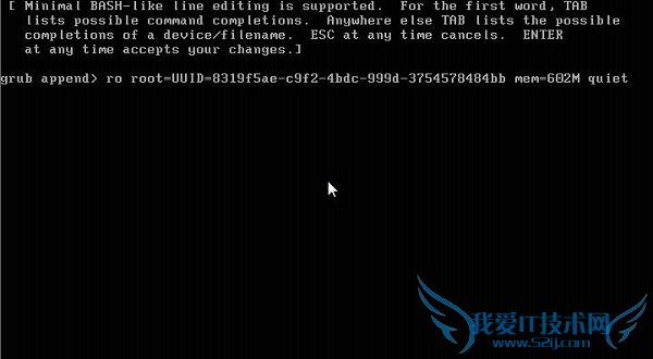 在“mem=602M quiet”后面加入“空格”和“1”这两个字符。然后回车,就会以单用户模式引导 COS 并进入单用户模式。