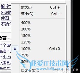 当然这样一个问题也许难不倒某些网友,比如可以通过最右侧的“快捷菜单”找到“缩放”按钮,也能借助Ctrl+、Ctrl-实现快捷缩放,不过最方便的还得数老版IE中那个设在右下角的缩放按钮。