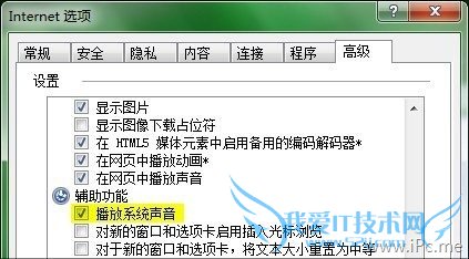 其实导航音在IE9中并没有被完全取消,只不过就是默认没启动罢了。如果想重新开启它也很方便,只要打开Internet选项,进入“高级”→“辅助功能”标签,再勾选“播放系统声音”就可以了。