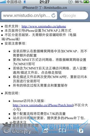 打开Safari 输入以下网址:w w w .xmistudio.c n/iphone/patch. htm l(去掉空格)