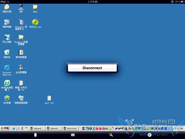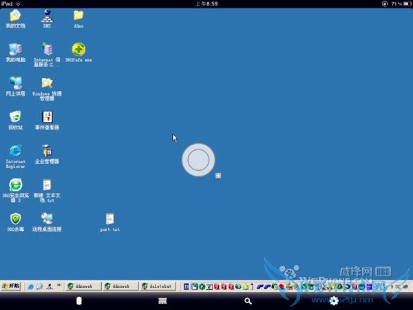 成功的话就进入桌面了,在这个窗口的下面有四个功能,分别是鼠标、键盘、放大、退出。
