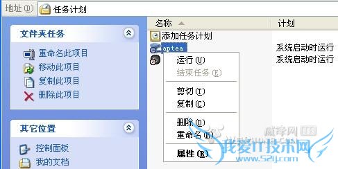 任务计划是否能自动运行,可以测试。先用鼠标右键点“aptea.exe”。