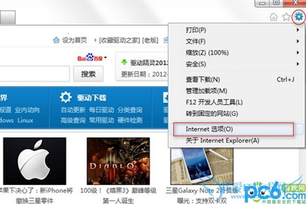 点击右上角的设置,找到“Internet选项”。