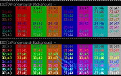 30(黑色)、31(红色)、32(绿色)、 33(黄色)、34(蓝色)、35(洋红)、36(青色)、37(白色)。