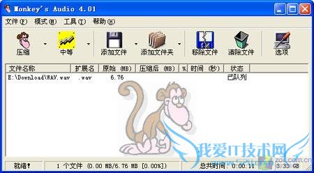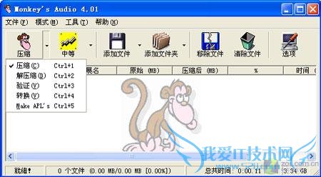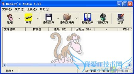 打开Monkey's Audio,我们可以看到软件风格相当简洁,而背景上的那只猴子更是平添许多趣味。
