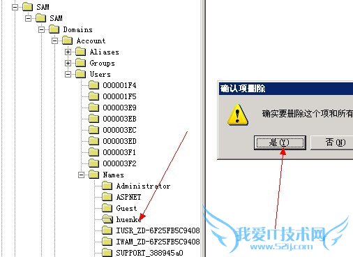 删除该子项下的陌生帐号及与之相对应的Domains\Account\Users里的项。