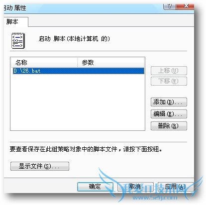 在“打开”框中输入gpedit.msc,点击确定按纽,以打开组策略对话框。通过鼠标点击定位到如下路径:"本地计算机"策略→计算机机配置→Windows设置→脚本(启动/关机),然后在右边的框中选择"启动"项,并将刚才建立的批处理文件添加到启动脚本列表中,确定并退出就可以了。