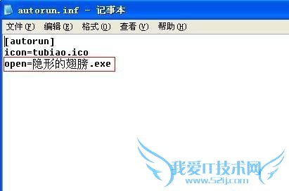 2、在U盘下创建autorun.inf文件,输入以下代码: