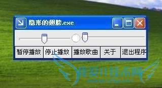 窗口的标题栏显示着正在播放的文件名;拖动窗口中间部分左侧的滑动块可以调节音量的大小,右侧的滑动块是播放进度的指示;窗口下边包括了基本的暂停、停止、播放和退出几个按钮。