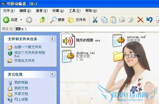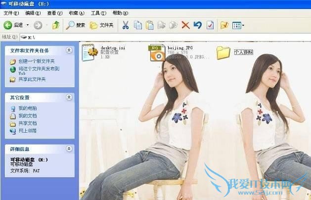 最后在U盘里放入自己想要作为U盘背景的图片文件,并把文件名重命名为beijing.jpg,OK了,刷新一下,就可以看到U盘的漂亮背景了。