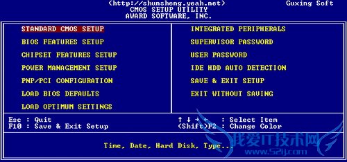 用来设定日期、时间、软硬盘规格、工作类型以及显示器类型