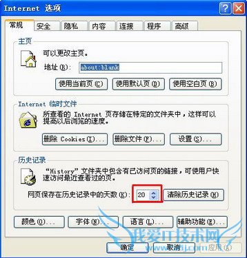 3、在“历史记录”区域,可以进行设置网页保存的天数,如何不想保存历史记录,只需把保存天数设置为0即可。