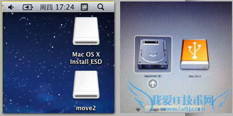 将制作好的U盘插入电脑,你会看到加载的两个磁盘图标,一个是OS X安装盘,一个是可以随便存储文件的move2。
