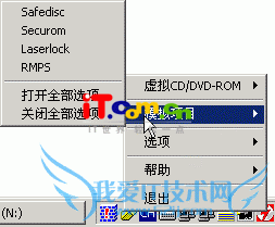 有时候如果你插入虚拟光盘后发现不起作用,明明加载了镜像文件,可是在'我的电脑'里面却看不到。或者可以看到光盘,但是操作的时候总是出错。那么可以试试看这里面选项。模拟项目里面有四个选项,当你要插入的MDS格式的镜像文件的话,那么选择RMPS即可。如果这张文件有使用光盘保护技术的话,那么选择safedisc。其他选项用到的时候比较少,如果选择RMPS和safedisc也不起作用的话,可以试试其他选项。(图9)