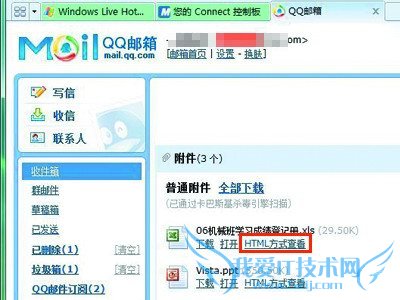 访问QQ邮箱,进入收件箱打开相关的邮件,如图1所示,可以看到Office文档附件的右侧较以前增加了一个名为“HTML查看”的链接。