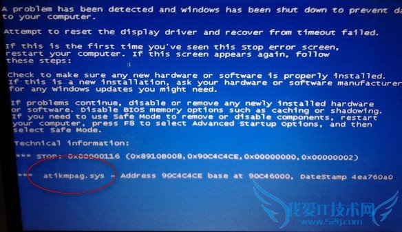 今天一同事开机遇到蓝屏提示atikmpag.sys文件错误。如下图: