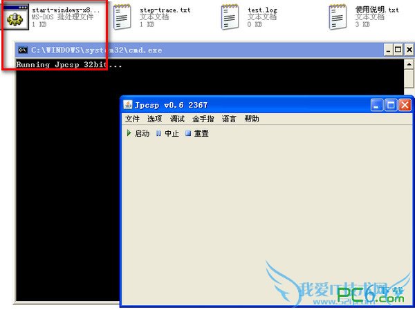 1.打开从压缩包中解压得到的“JPCSP”文件夹下的“start-windows-x86.bat”文件,即可启动模拟器。