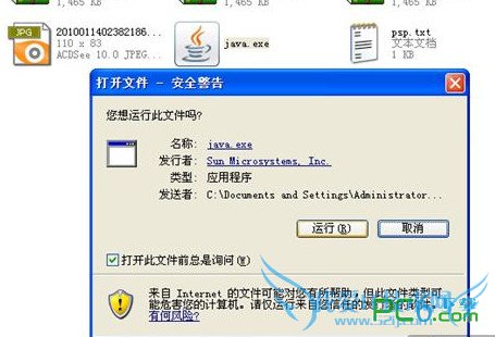 下载JAVE组件,双击其中的“JAVA.EXE”图标。如下图所示,接下来将JAVA平台程序安装到电脑中。
