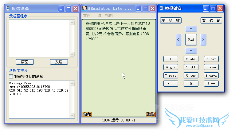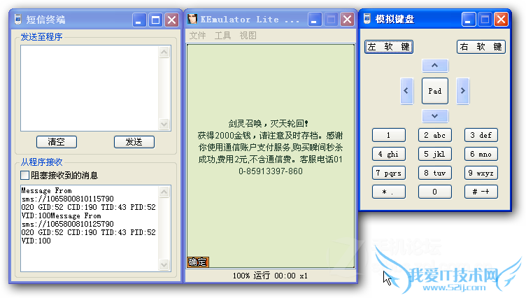 左边是短信终端,右边是模拟键盘。