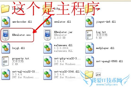 把kemulator解压缩,因为是绿色软件,所以不用安装,我们所使用的是0.98版的是汉化版,里面的语言配置文件我已经处理过,默认的就是简体中文了,要注意的是,文件夹里面有两个图标一样的文件名为kemulator的文件,一个扩展名是exe,一个是jar,扩展名是exe的是主程序文件,如图: