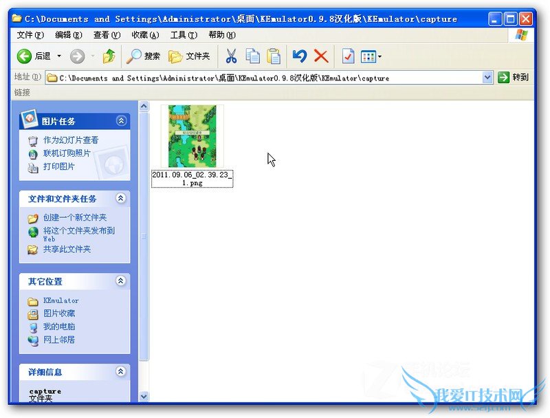 然后,到ke模拟器所在的目录下,找到一个capture的文件夹,截好的图就在这里面了: