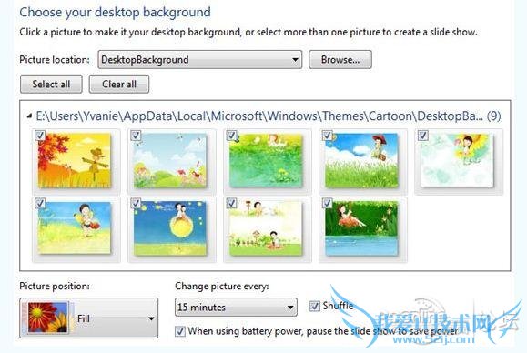 1.在在桌面单击右键,选择“个性化”,在个性化窗口选择“Desktop Background”,即桌面背景选择,选择一个你喜欢的壁纸的文件夹,在你打算使用作为壁纸的图片左上角的小框框上打勾